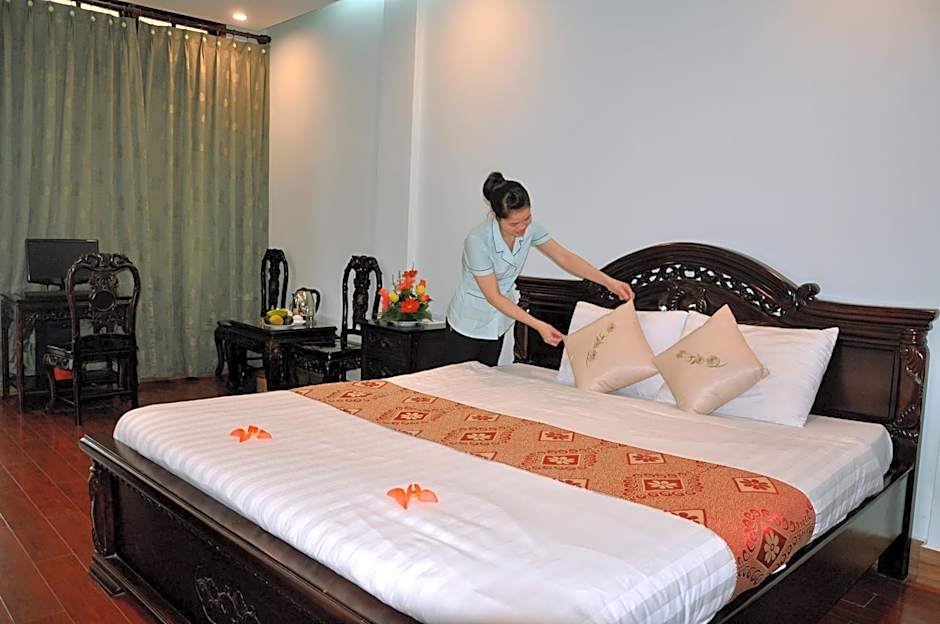 Located on the top floors of the hotel, rooms offer panoramic views of Huong River.